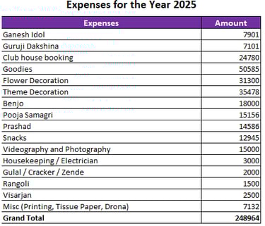 Your donation will directly support the community events and services related to Ganesh Utsav.